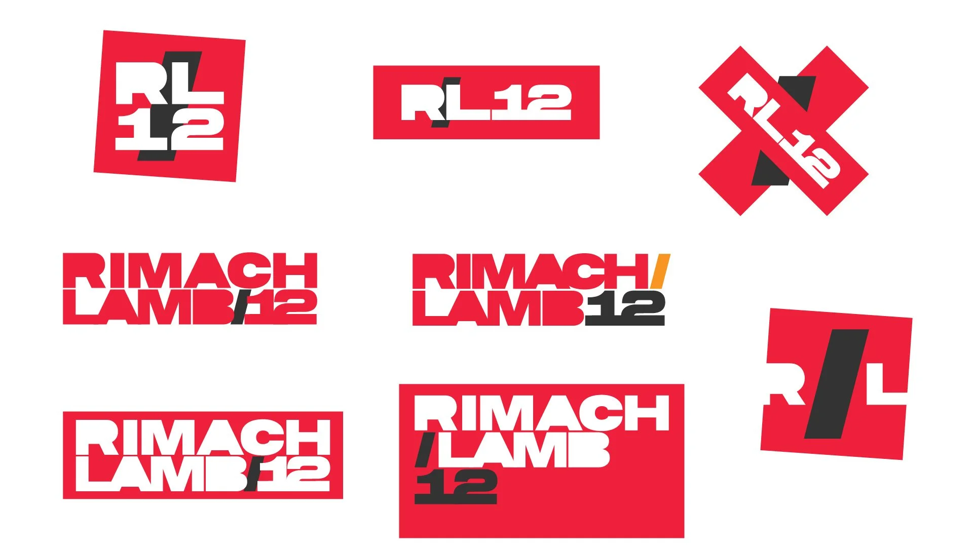 Various logo designs for RIMACH LAMB/12 in red, black, and with different backgrounds, including rectangular and crossed shapes.